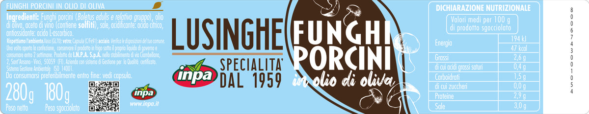 I nostri funghi porcini in olio di oliva, delicatamente profumati, un concentrato di bontà naturale. Gusta la pienezza della loro consistenza per un'esperienza culinaria impeccabile. Ogni fase è eseguita con cura e dedizione per garantire un prodotto che ricorda i sapori autentici di un tempo.