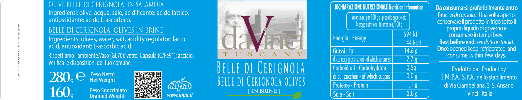 Metodo di conservazione: Dopo l'apertura conservare in frigo ricoperto di olio e consumare entro 2 settimane