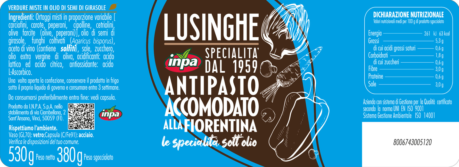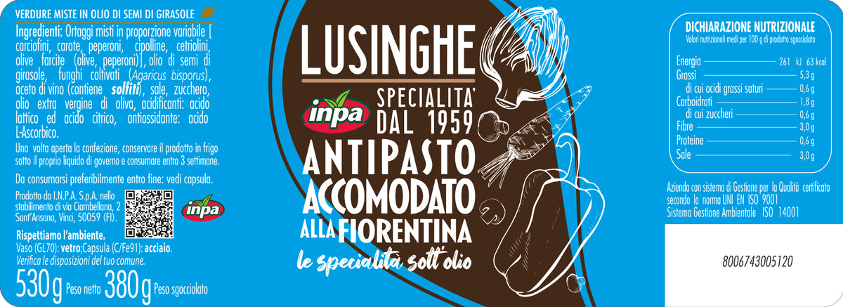 Metodo di conservazione: Dopo l'apertura conservare in frigo ricoperto di olio e consumare entro 2 settimane